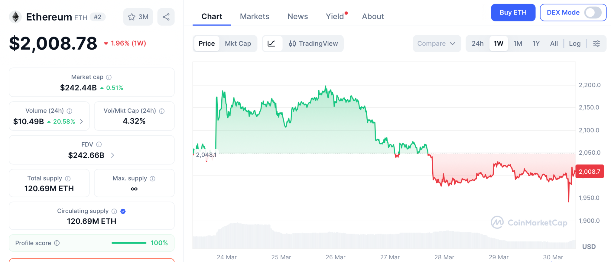 Data from CoinGecko shows ETH trading near $2,040 at the time of writing, up by about 2% in the last 24 hours but remaining pretty flat over the past week. Nevertheless, the token was down more than 10% across 14 days, although it gained approximately 6% in the previous month.